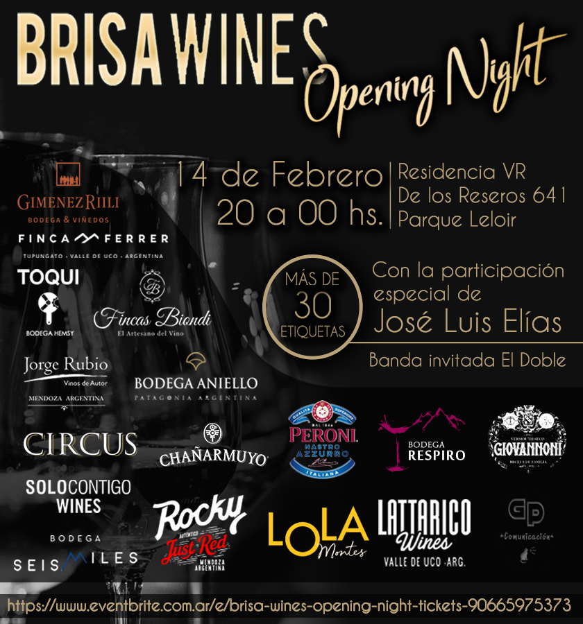 El pasado viernes, se realizó la primer edición de la feria de vinos de Brisa Wines, a cargo de Lorena Villagra, con más de 30 etiquetas y bodegas como Finca Ferrer, Gimenez Rilli, Lattarico wines, Bodega Jorge Rubio, Respiro wines, Bodega Aniello, Fincas Biondi, Solo contigo wines, Bodega Seismiles, Chañarmuyo, Toqui, Rocky, Lola, Circus, entre otros.