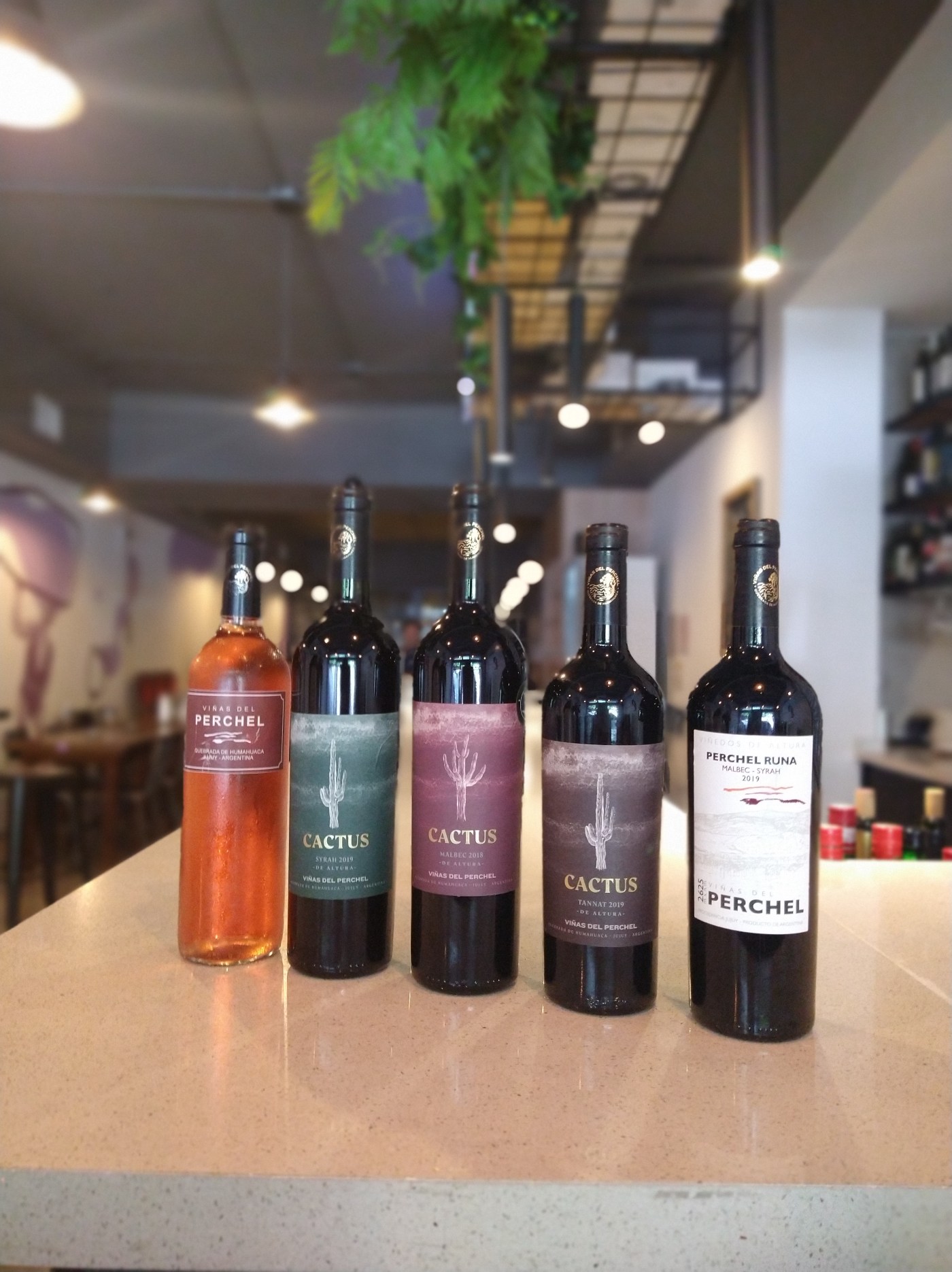 - Cactus Syrah: La segunda novedad de Viñas del Perchel para este año. Es un tinto de colores oscuros, con aromas silvestres y de mora negra muy típicos de la variedad que se perciben fácilmente. Fue criado 12 meses en barricas de roble y tiene de 24 meses de estiba. En el paladar es estructurado, de buen cuerpo, y una destacada acidez. Elegante complejo y de largo final.
